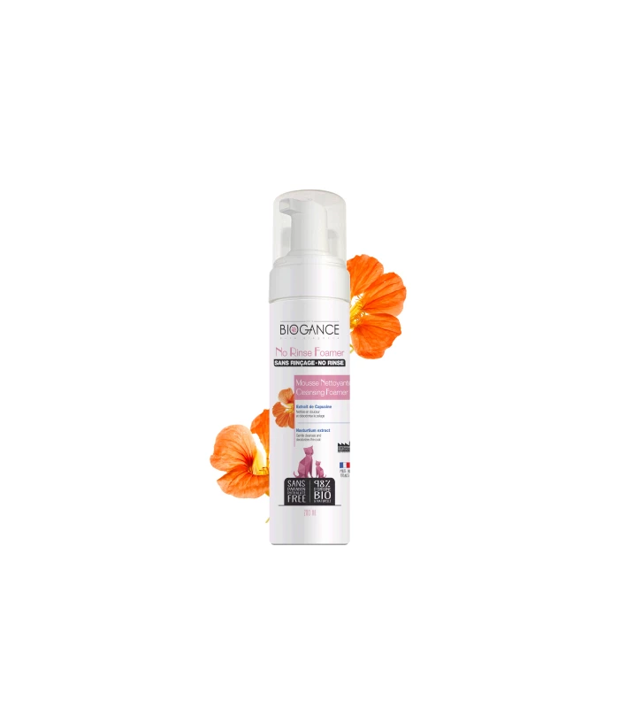 Cette mousse, à base d’extrait de capucine. a été spécialement élaborée pour nettoyer la peau et le pelage en douceur et désodoriser tout type de pelage.