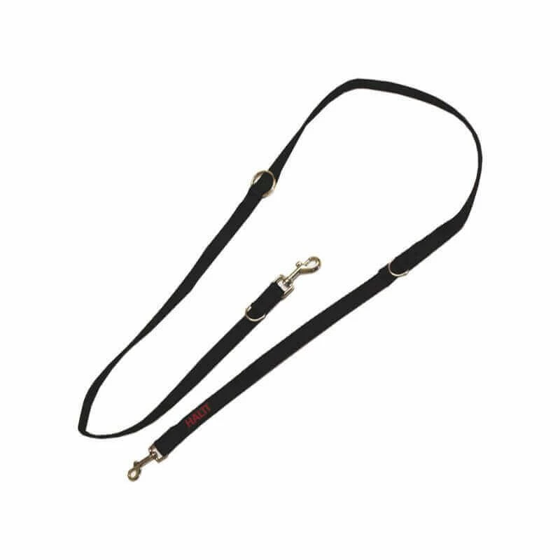 Cette laisse, en nylon doublé, peut être utilisée avec un licol ou un harnais Halti, et permet un double contrôle particulièrement efficace de l’animal.