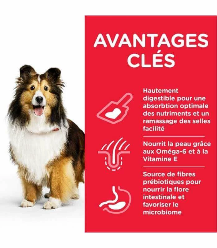 Ses ingrédients hautement digestibles permettent une absorption optimale des nutriments et un ramassage des selles facilité.