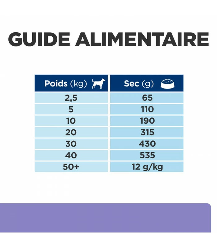 Aliment thĂ©rapeutique, il doit ĂȘtre prescrit par votre vĂ©tĂ©rinaire selon l’Ă©tat de santĂ© de votre animal. Les rations journaliĂšres conseillĂ©es doivent ĂȘtre adaptĂ©es aux conditions climatiques, Ă lâactivitĂ© de lâanimal et Ă sa condition physique selon les conseils de votre vĂ©tĂ©rinaire. De lâeau fraĂźche et propre doit ĂȘtre disponible Ă tout moment de la journĂ©e.