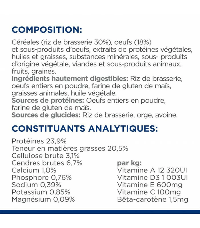Aliment thérapeutique, il doit être prescrit par votre vétérinaire selon l’état de santé de votre animal. Les rations journalières conseillées doivent être adaptées aux conditions climatiques, à l’activité de l’animal et à sa condition physique selon les conseils de votre vétérinaire. De l’eau fraîche et propre doit être disponible à tout moment de la journée.