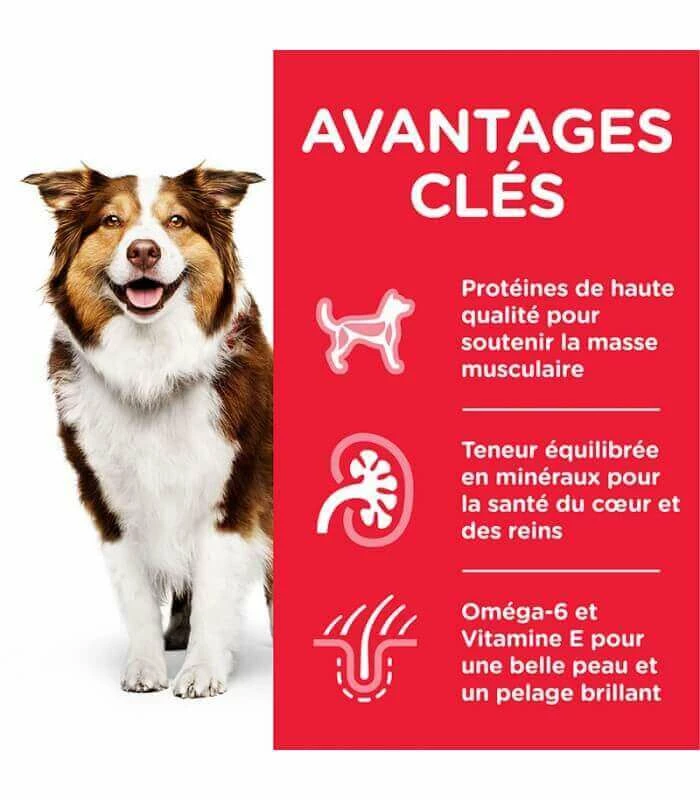 Cet aliment, complet et doux pour lâestomac des chiens ĂągĂ©s, est Ă©laborĂ© Ă partir dâingrĂ©dients de haute qualitĂ© faciles Ă digĂ©rer. Il procure des antioxydants et de la vitamine C & E, pour maintenir la vitalitĂ© et renforcer le systĂšme immunitaire et offre le juste Ă©quilibre en nutriments pour aider votre chien Ă rester en bonne santĂ© pendant longtemps. RecommandĂ© par les vĂ©tĂ©rinaires, cet aliment apporte une teneur Ă©quilibrĂ©e en minĂ©raux pour la santĂ© du cĆur et des reins.