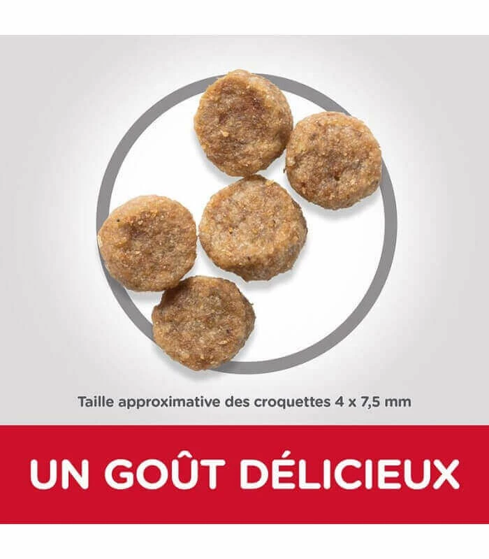 Recommandé par les vétérinaires, cet aliment aide votre petit chien à bien vieillir. Il contient un mélange synergique de nutriments pour favoriser la vigueur et l’énergie de votre animal et sa teneur équilibrée en minéraux permet de soutenir la bonne santé de son cœur, de ses reins et de sa vessie. Formulé à partir d’ingrédients naturels de haute qualité, cet aliment procure également des acides gras oméga-6 et de la vitamine E pour nourrir la peau et le pelage, ainsi qu’un mélange d’antioxydants unique pour soutenir le système immunitaire. La taille des croquettes est adaptée à la mâchoire de votre petit chien, pour faciliter la mastication.