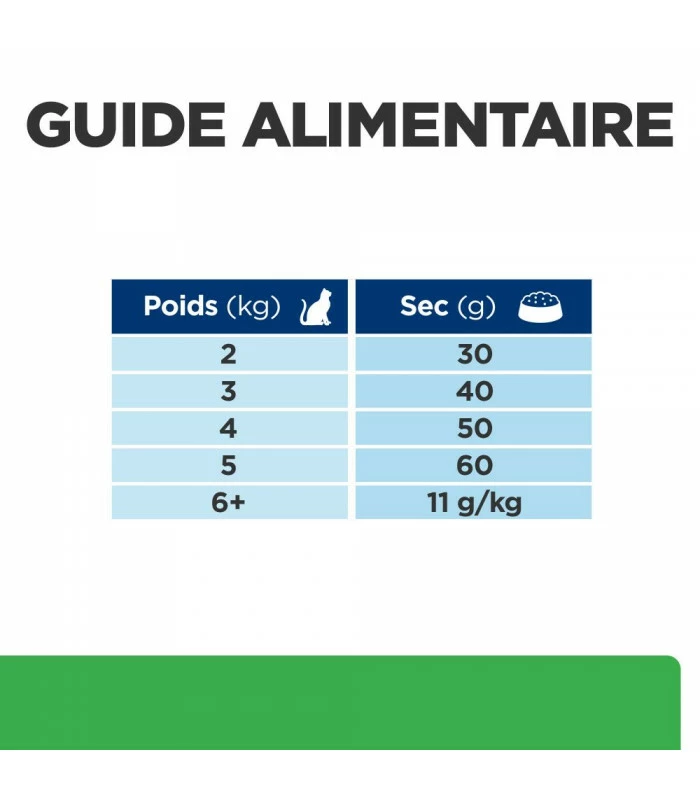 Aliment thérapeutique, il doit être prescrit par votre vétérinaire selon l’état de santé de votre animal. Les rations journalières conseillées doivent être adaptées aux conditions climatiques, à l’activité de l’animal et à sa condition physique selon les conseils de votre vétérinaire. De l’eau fraîche et propre doit être disponible à tout moment de la journée.