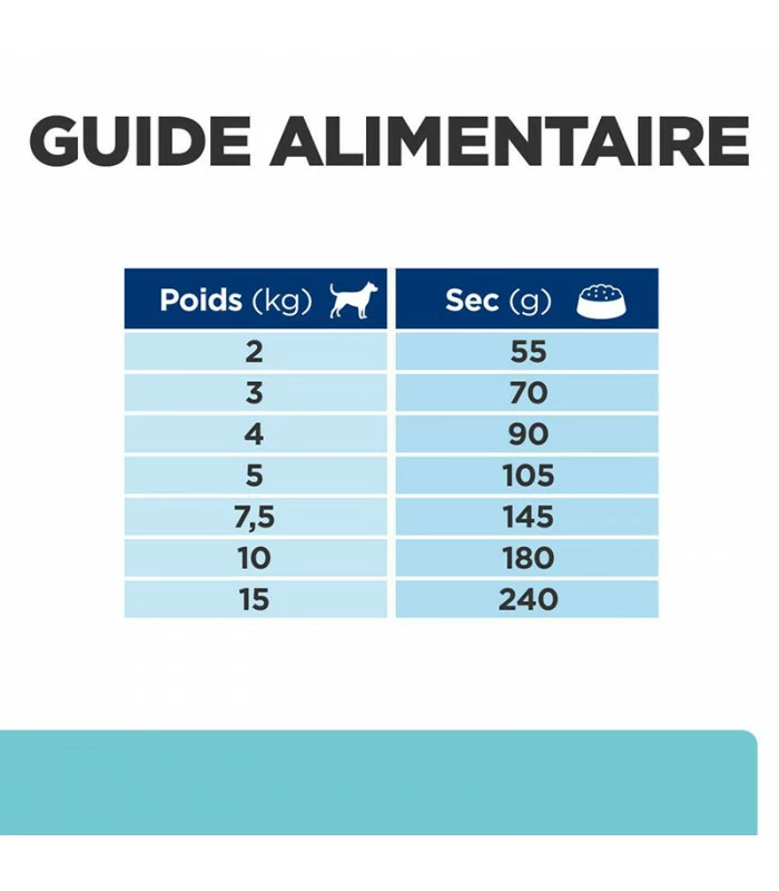 Aliment thĂ©rapeutique qui doit ĂȘtre prescrit par votre vĂ©tĂ©rinaire selon l’Ă©tat de santĂ© de votre animal. Les rations journaliĂšres conseillĂ©es doivent ĂȘtre adaptĂ©es aux conditions climatiques, Ă lâactivitĂ© de lâanimal et Ă sa condition physique selon les conseils de votre vĂ©tĂ©rinaire. De lâeau fraĂźche et propre doit ĂȘtre disponible Ă tout moment de la journĂ©e.