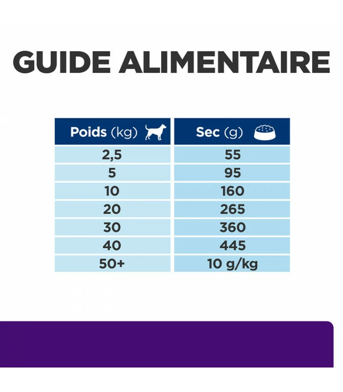 Aliment thérapeutique, il doit être prescrit par votre vétérinaire selon l’état de santé de votre animal. Les rations journalières conseillées doivent être adaptées aux conditions climatiques, à l’activité de l’animal et à sa condition physique selon les conseils de votre vétérinaire. De l’eau fraîche et propre doit être disponible à tout moment de la journée.