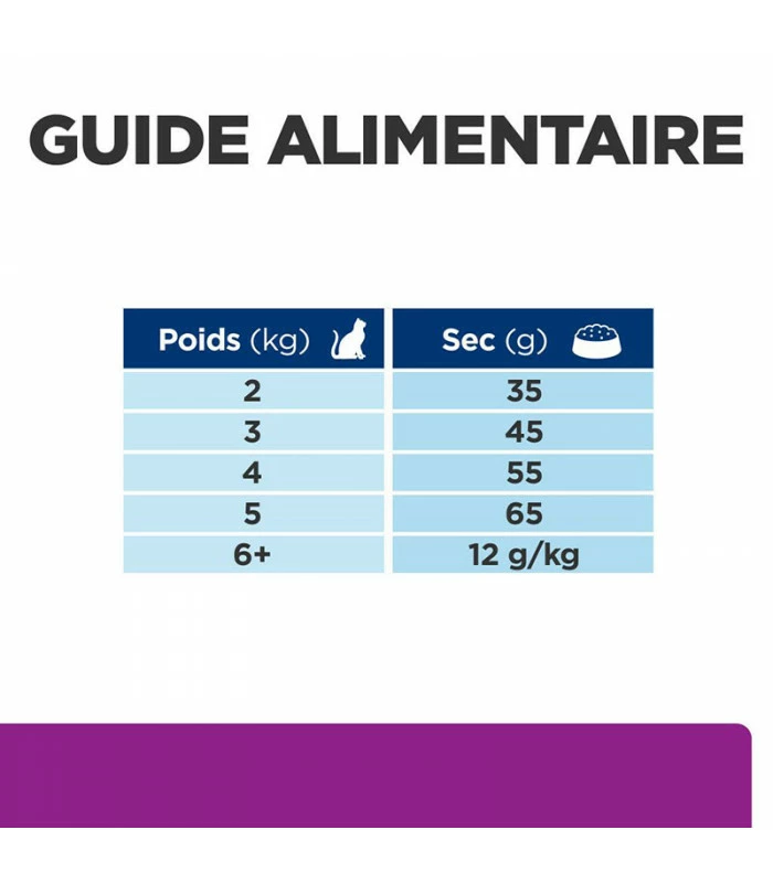 Aliment thérapeutique qui doit être prescrit par votre vétérinaire selon l’état de santé de votre animal. Les rations journalières conseillées doivent être adaptées aux conditions climatiques, à l’activité de l’animal et à sa condition physique selon les conseils de votre vétérinaire. De l’eau fraîche et propre doit être disponible à tout moment de la journée.
