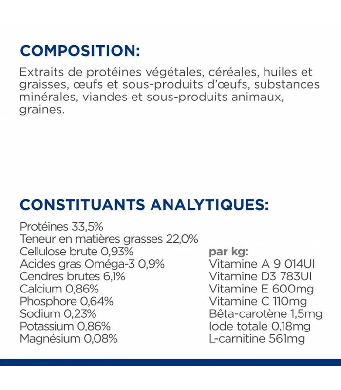 Teneurs en phosphore & sodium réduites et des acides gras Oméga-3 issus d’huile de poisson,