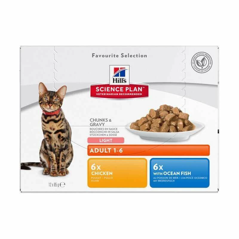 Cet aliment humide, sous forme de tendres bouchées en sauce, répond aux besoins des chats ayant un faible apport calorique (chats moins actifs, castrés ou prédisposés à l’excès pondéral). Elaboré à partir d’ingrédients de haute qualité, cet aliment apporte à votre chat un apport limité en calories. Il procure de la L-Carnitine pour aider à maintenir un poids idéal et sa teneur en fibres naturelles et en protéines de haute qualité aide votre compagnon à contrôler sa sensation de faim entre les repas. Cet aliment favorise un pelage brillant et une peau en bonne santé grâce à la vitamine E et aux acides gras oméga-6. Saveur poulet et poisson.
