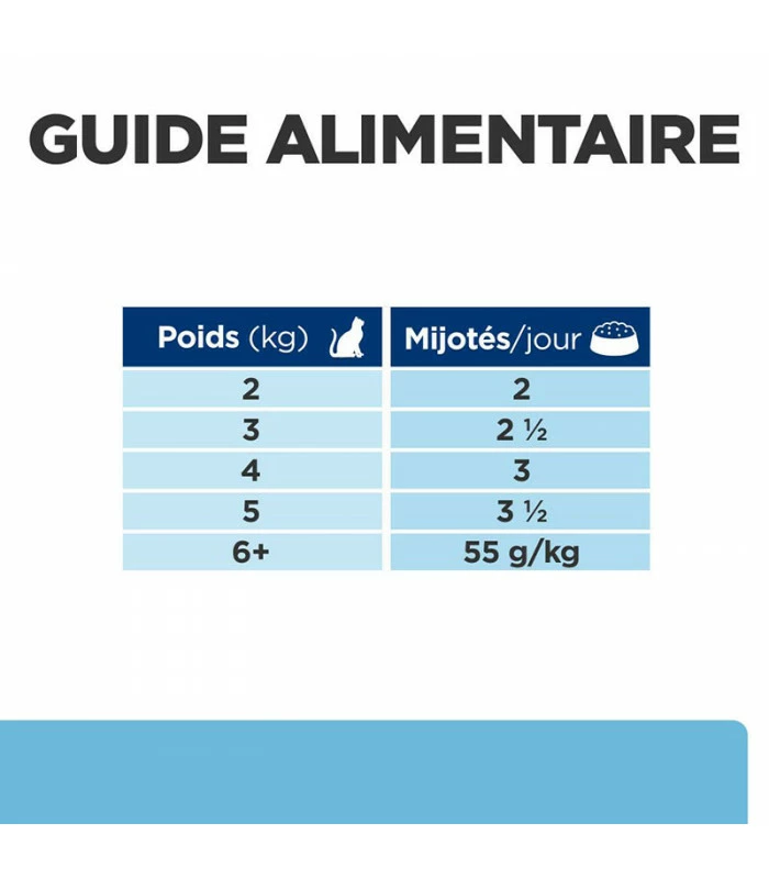 Aliment déconseillé pour les chatons, les chattes gestantes ou allaitantes et les chats souffrant de maladie rénale chronique à un stade avancé.