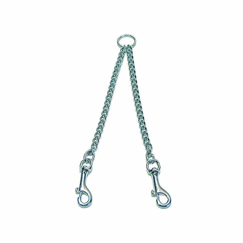 Cette laisse vous permet de relier les colliers de vos chiens ensemble et d’y attacher une laisse. Elle évite ainsi que les chiens ne tirent en laisse chacun de leur côté. Résiste aux coup de dents.