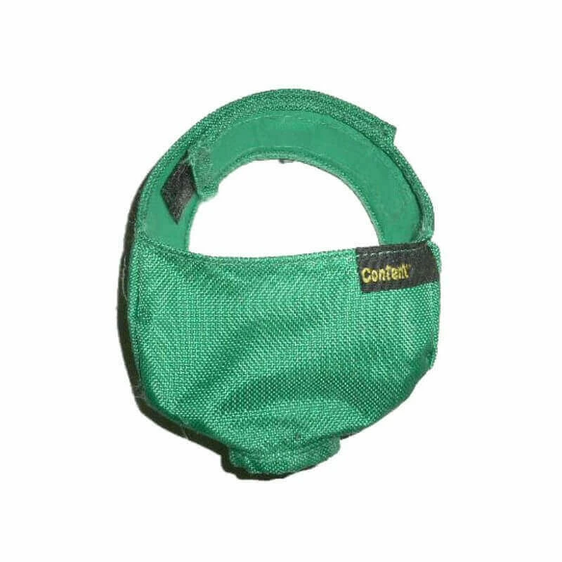 Muselière pour chien à nez écrasé, qui neutralise la gueule et cache les yeux pour limiter les mouvements de défense de l’animal.