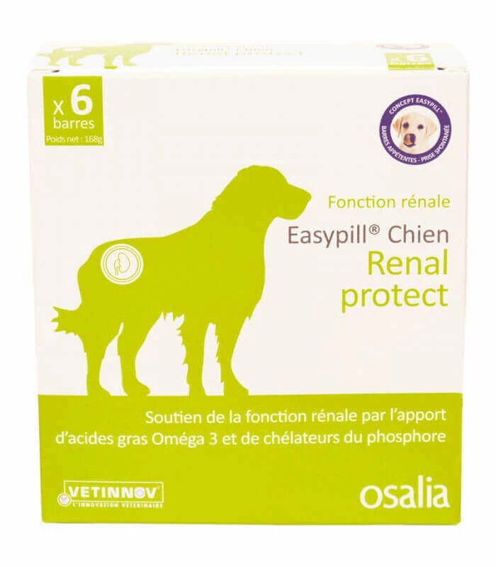 Ce complément appétent apporte des acides gras Oméga 3 qui préviennent la détérioration du débit de filtration glomérulaire et des chélateurs de phosphore (carbonate de calcium micro-encapsulé). Il aide ainsi à réduire l’hyperphosphatémie.