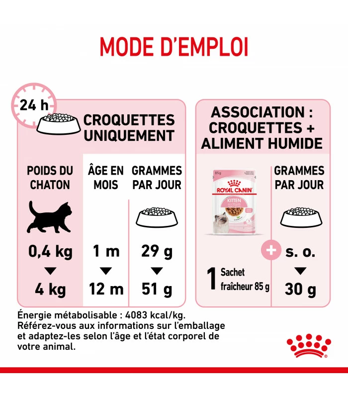 Aliments complets pour chatons, 2e âge (jusqu’à 12 mois).