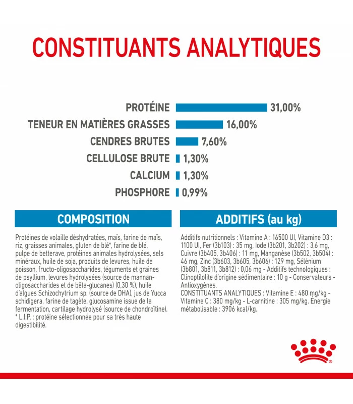 Croquettes premium formulées pour les chiots de race géante, présentant une sensibilité ostéo-articulaire ou digestive.