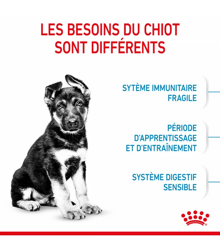 Cet aliment contient un supplément en acides gras essentiels et une combinaison équilibrée en protéines et en minéraux, destinés à préserver les os et les articulations pendant la croissance. Il garantit une appétence maximale grùce à ses ingrédients de qualité et des protéines trÚs digestibles (pulpe de betterave et huile de poisson) qui favorisent une bonne tolérance digestive. Sa formule exclusive renforce les défenses naturelles et la couleur du poil du chiot.