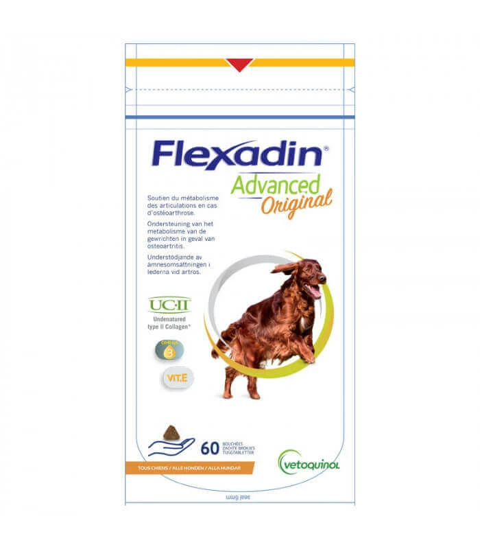 Ce complément, sous forme de bouchées appétentes, contient de l’UC-II® (40 mg/bouchée), avec une forme de collagène de type II non dénaturé, principale protéine de structure du cartilage. Il contient également des acides gras Oméga-3 qui participent au maintien des articulations et de la Vitamine E connue pour ses propriétés antioxydantes.